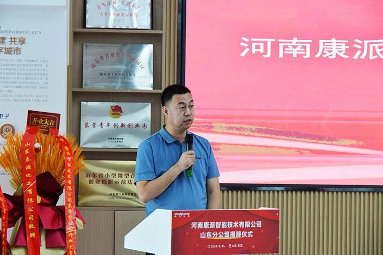 揭牌儀式上,東營市企業(yè)人才發(fā)展促進中心主任孫玉林向康派智能山東分公司的成立表示熱烈祝賀。他表示,在康派智能為東營市工業(yè)企業(yè)提供過服務的項目中,親眼見證了康派智能在技術應用、產品質量和客戶服務方面務實的作風和工作態(tài)度。今天,康派智能選擇東營作為分公司的落戶之地,不僅體現了公司對東營市場的重視和信心,也為我們東營市的智能制造和工業(yè)互聯(lián)網發(fā)展注入了新的活力和動力。